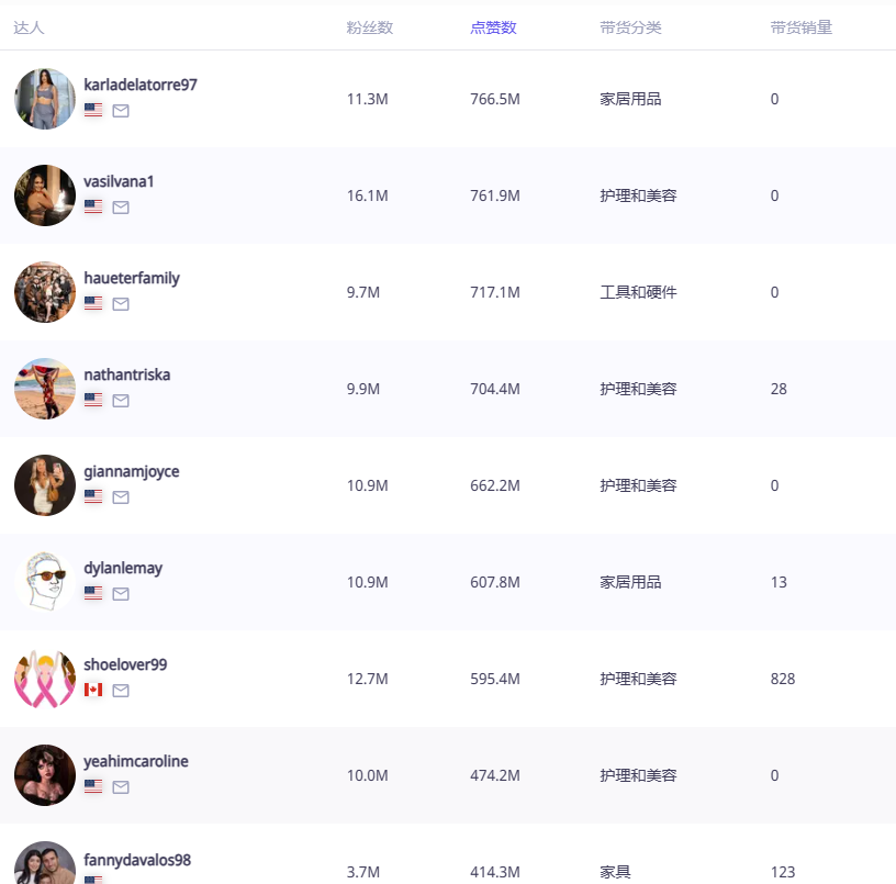 品牌在达人选择上采取了多元化的合作策略,在推广视频点赞量排名前十的达人中可以看到,有一半是与“护理和美容”相关的达人。