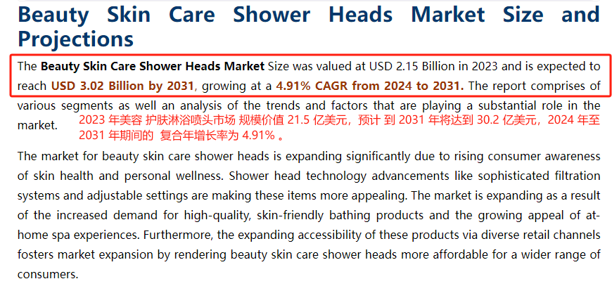 护肤淋浴喷头市场规模增长 图源:Market Research Reports