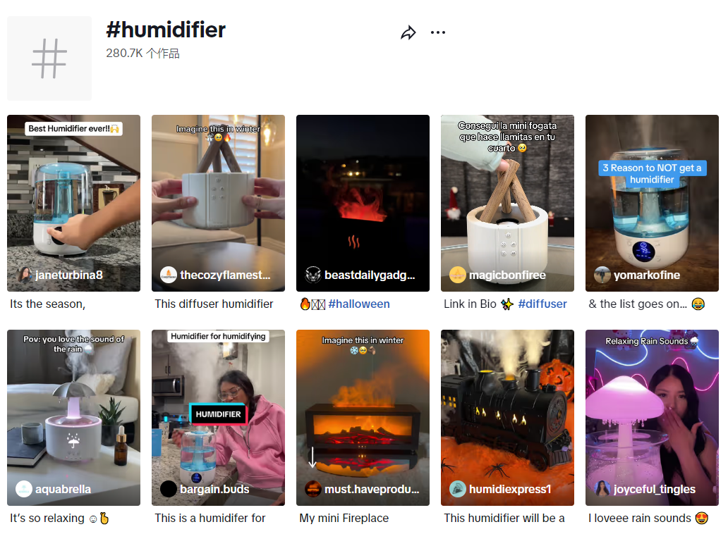 博主分享各种加湿器 图源:TikTok