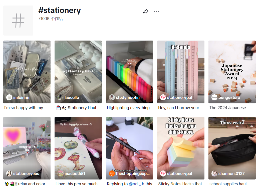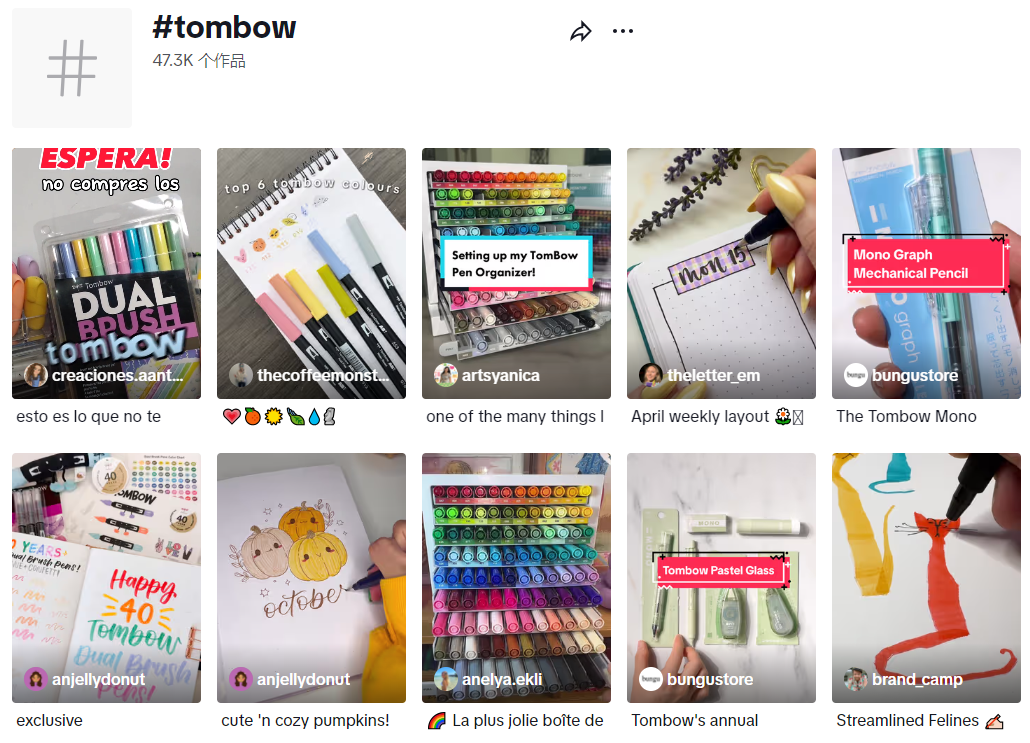 开学季期间,Tombow推出的彩色中性笔和文件夹在社交媒体上掀起了一股晒文具的热潮。学生党和年轻白领纷纷加入#Stationery话题,在TikTok上晒出自己喜爱的“宝藏文具”,为Tombow带来了一波曝光和销量的双丰收。