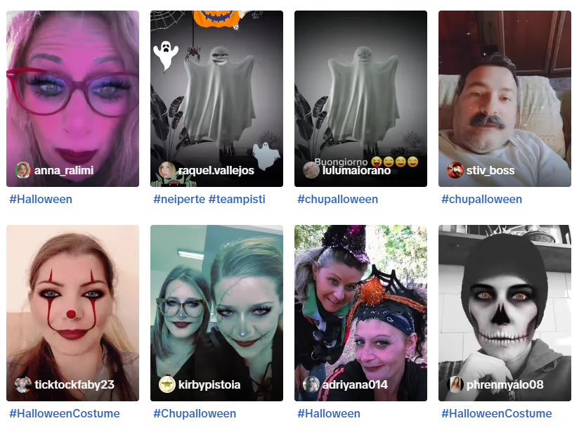 棒棒糖品牌Chupa Chups在万圣节推出了#Chupalloween挑战赛,邀请用户运用万圣节主题的贴纸,将自己装扮成各种恐怖角色,并发挥创意制作视频内容。