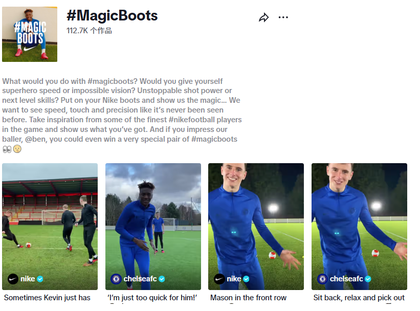 Nike的#MagicBoots挑战,让参与者秀出自己最炫酷的动作,互动量瞬间爆表,让粉丝在“玩”中建立了对品牌的好感。这种活动带来的不仅是品牌热度,还帮助其在年轻用户中建立了持久的认同感。