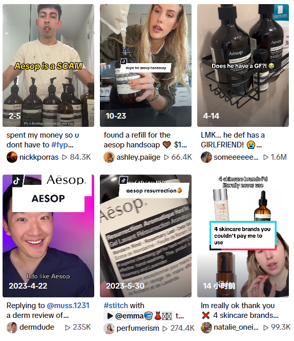 澳大利亚护肤品牌Aesop利用TikTok上的KOC自然推荐,让产品更贴近用户,且这种推广方式相对成本低、效果好。品牌可以结合KOL和KOC的不同特点,扩大宣传效果。
