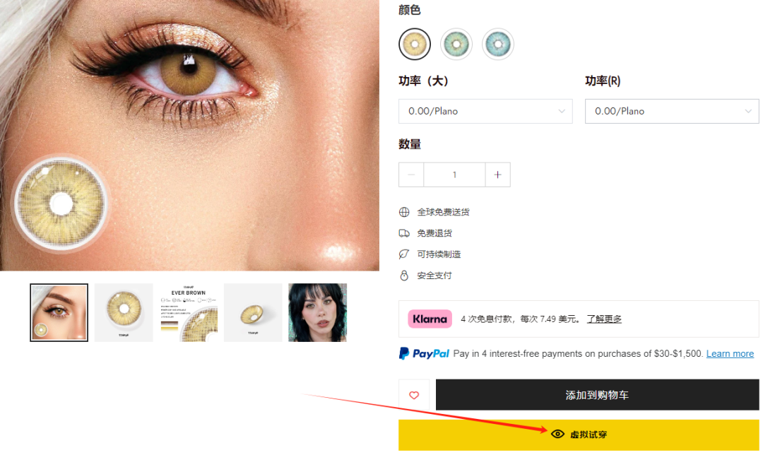 除此之外,TTDEYE还通过采用先进的AR(增强现实)技术,让消费者在线上就能轻松试戴各种款式的美瞳。用户在试戴满意后可以直接跳转至购物页面下单,这样的流程设计有效减少了用户的流失,同时提高了网站订单的转化率。