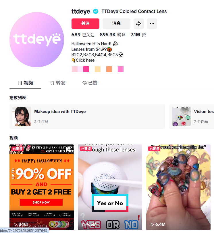 TTDEYE的TikTok账号视频内容,将时长精准控制在10秒左右,内容精炼而富有吸引力。视频中,AR场景下的上妆效果栩栩如生,同时穿插着众多Cosplayer的精彩瞬间,吸引了大量观众的目光,不少视频的播放量更是突破了数百万大关。