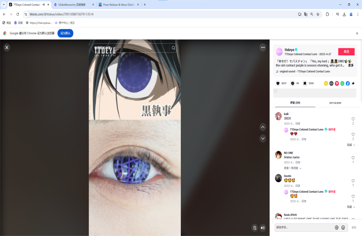 在产品上,TTDEYE一直致力于打造以欧美审美为主的美瞳花色,自创立以来已为消费者呈现了超过500款镜片以及涵盖15种颜色选项的隐形眼镜产品线。