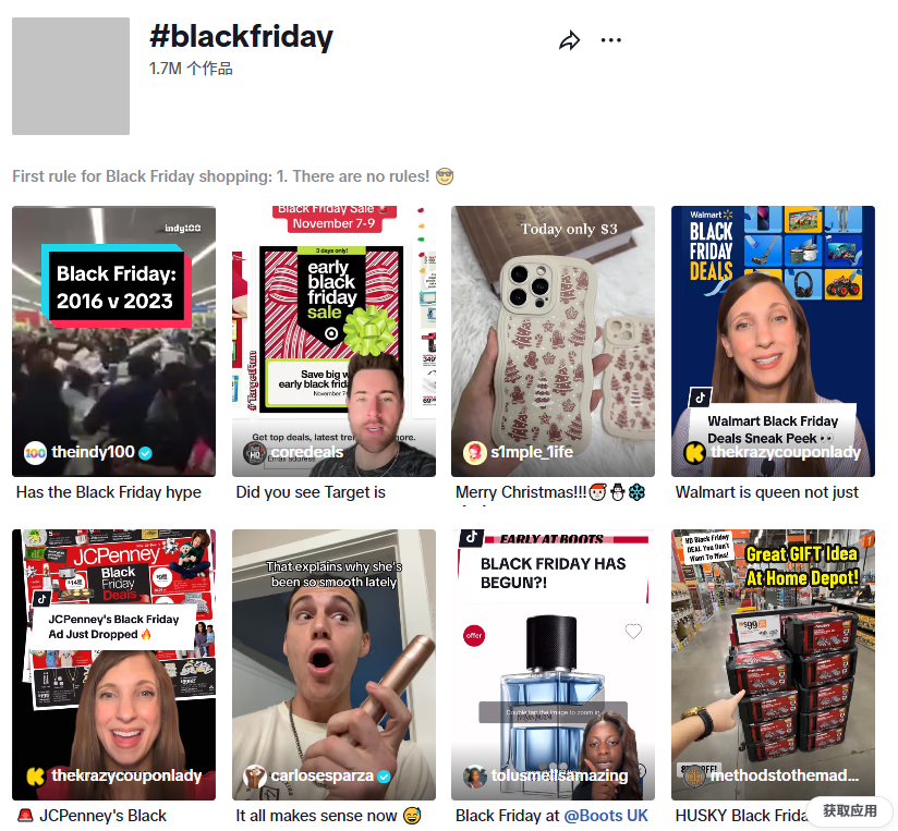 品牌可以通过#BlackFridayDeals或#HolidayGifts等热门标签搭上黑五的“顺风车”,迅速引起用户关注。再加上TikTok的达人推荐属性,许多品牌在大促期间的销量和曝光量都得到了大幅提升。