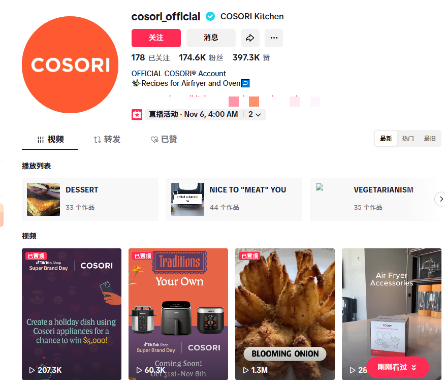 一个典型的例子就是小家电品牌Cosori。他们推出的空气炸锅在2023年黑五期间成为爆款,通过达人制作美食视频展示产品的便捷性和健康优势,短时间内吸引大量关注和分享。与传统广告不同,Cosori的空气炸锅得以在用户生活化的展示中引发讨论和共鸣,最终实现销售量超300万美元。