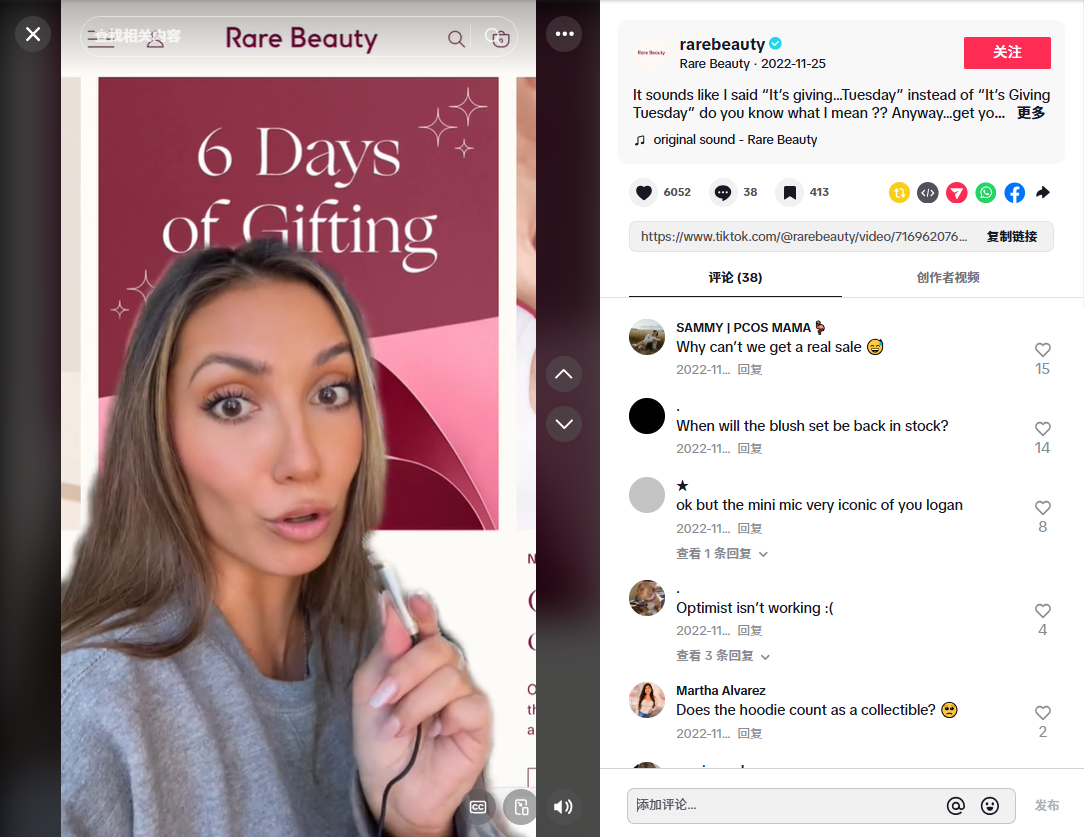 Rare Beauty-2022黑五大促 图源:TikTok