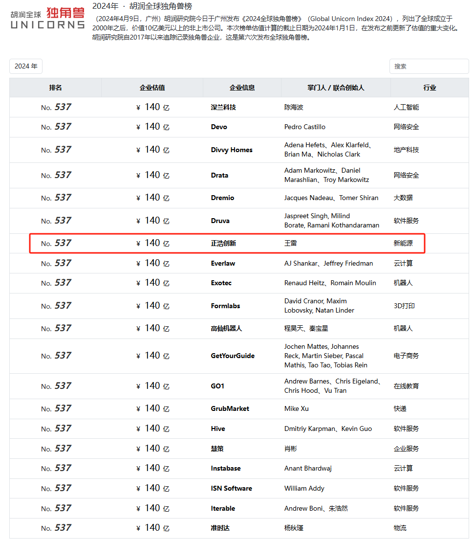此前(4月9日),正浩 EcoFlow还曾以140亿人民币的企业估值,入选了《2024·胡润全球独角兽榜》,排名536名,强悍实力可见一斑。