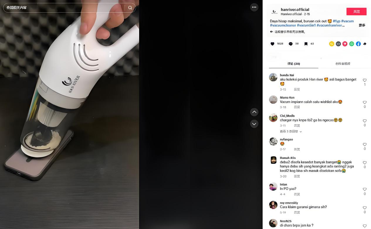 不难看出,HAN RIVER这个深圳的小众智能家电品牌在TikTok上做得不错,让品牌走出了国门,成功在东南亚地区淘金并站稳了市场。