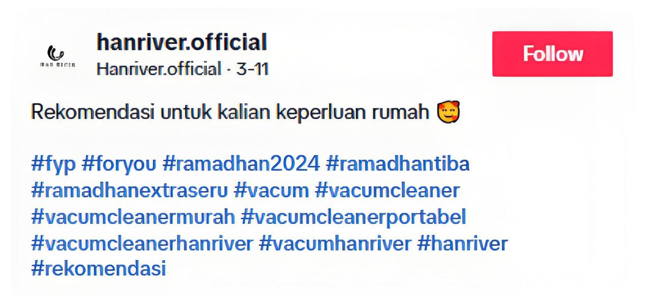 HAN RIVER品牌在TikTok上发布视频时,还会带上热度较大的话题标签,借势话题标签吸引更多的用户前来观看。