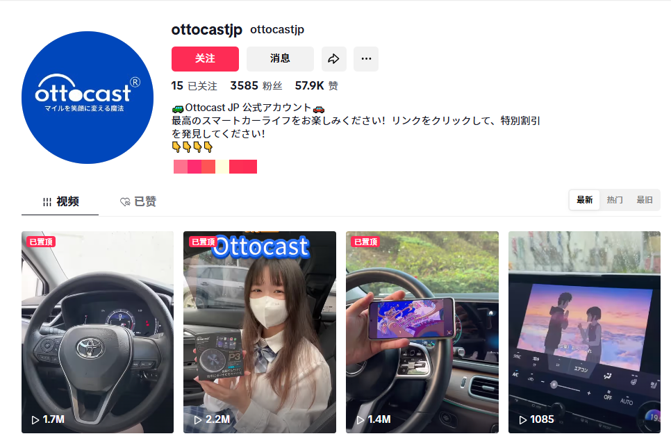 例如,针对日本市场,OTTOCAST品牌开设了TikTok账号@ottocastjp。在内容风格上,该账号更注重细腻、简洁的视觉呈现,符合日本用户对短视频“清新”和“实用”并存的偏好。目前,尽管账号@ottocastjp只有3585个粉丝,但是账号转化率却很高,发布的视频流量都能够维持在一万以上。