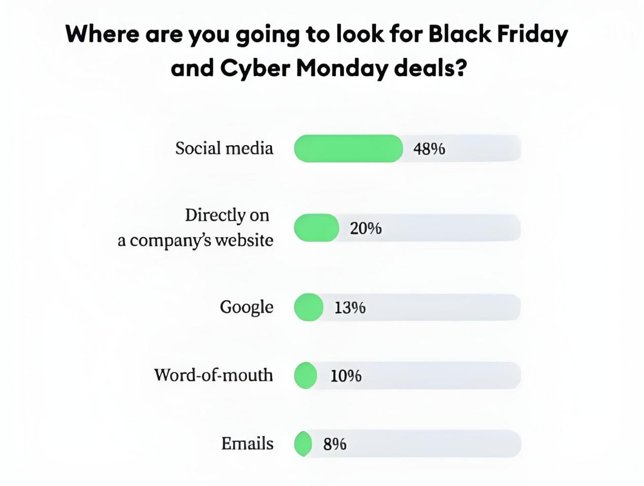 报告显示,有48%的消费者在黑五期间会通过社交媒体寻找折扣信息。
