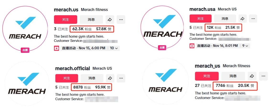 目前,麦瑞克在TikTok上共运营了四个账号: