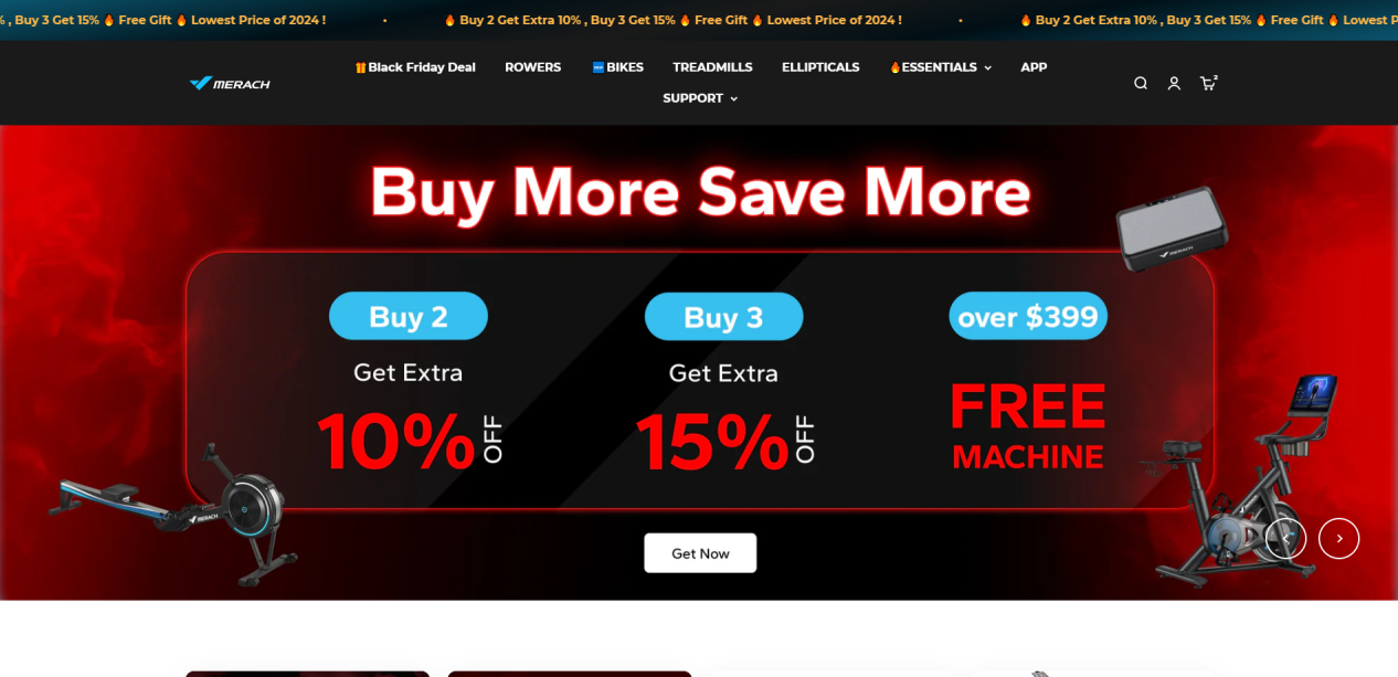 麦瑞克的独立站通过简洁的设计和清晰的产品展示,打造了与消费者直接沟通的窗口。首页突出展示了动感单车、跑步机等主力产品,并加入了“新品”和“热销产品”区域,帮助用户快速找到感兴趣的商品。同时,网站设置了多语言支持,降低了国际消费者的语言障碍。