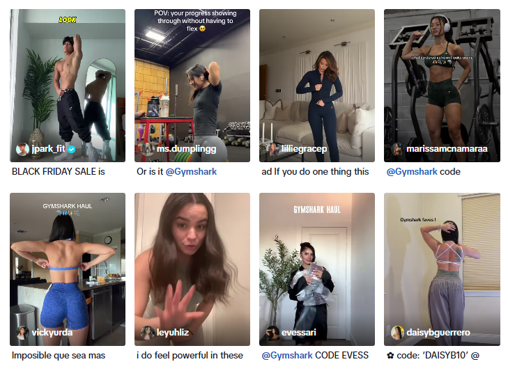 Gymshark成功结合幽默与品牌文化,推出了大量与健身相关的有趣挑战和视频,吸引了大批年轻粉丝,既增加了品牌曝光,也通过有趣的内容加强了品牌的健康、积极生活方式理念。