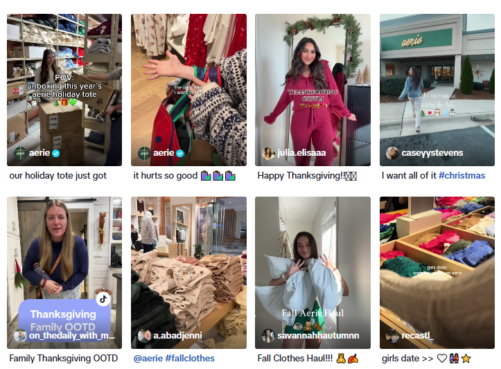 Aerie通过#AerieReal挑战,鼓励用户展示穿着品牌内衣的真实照片和视频,打破了传统美体标准,提倡每个人都可以展现最真实的自己。品牌以“没有PS的照片”作为宣传点,让用户在TikTok上分享自己的自然美。这个活动不仅吸引了大量的用户参与,还让Aerie在年轻女性群体中树立了强大的品牌形象,进一步推动了销量增长。
