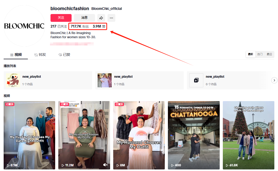 自入驻TikTok以来,BloomChic迅速通过平台强大的流量和短视频推广吸引了大量粉丝。截至目前,该品牌在TikTok上的账号@bloomchicfashion已经积累了超过71.77万粉丝,累计获得390万点赞。