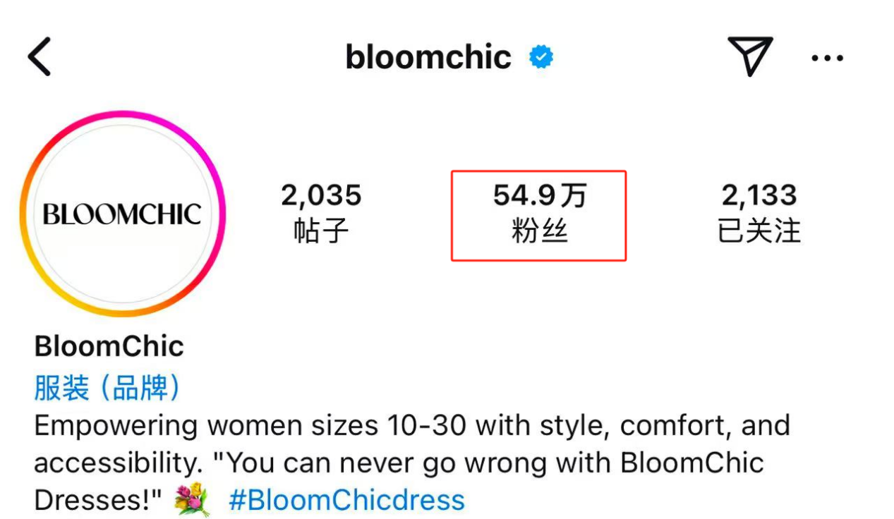 BloomChic的Instagram主页目前有54.9万粉丝,主要通过高质量的照片和穿搭展示提升品牌形象。