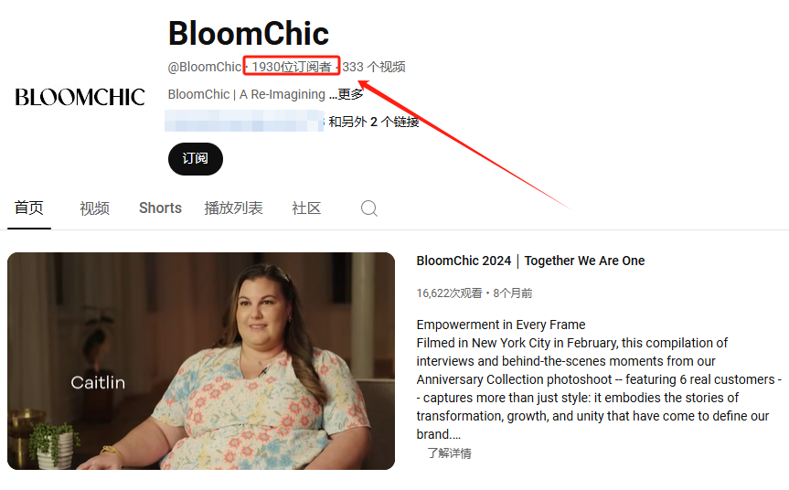 然而,相比于其他平台,BloomChic在YouTube上的影响力和互动性尚处于起步阶段。