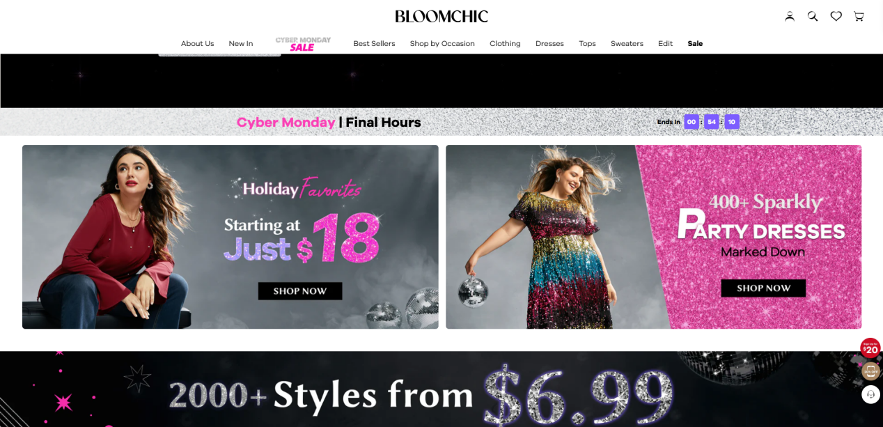 总体来看,BloomChic通过这些细节设置在一定程度上优化了用户体验,特别是对于海外市场的消费者。但随着竞争的加剧,如何维持独立站的流量和转化率,仍然是品牌需要继续关注的方面。