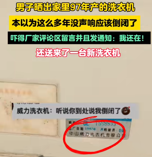 可谁能想到,就在网友们纷纷留言调侃自家的老电器时,视频中的主角竟然亲自现身评论区,并幽默回应:“听说你到处说我们倒闭了?”,还送上了一台崭新的滚筒洗衣机。