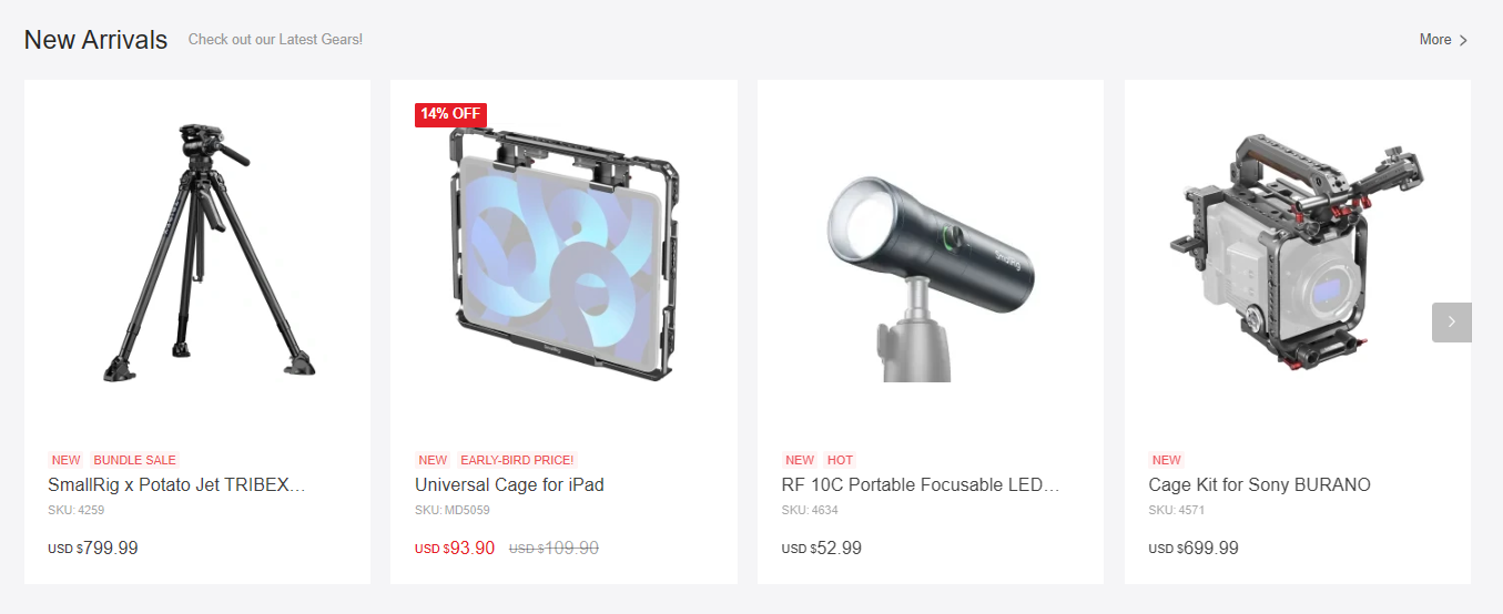 SmallRig品牌在进入海外市场的初期,采取了逐步布局的策略。该品牌首先将目光投向了市场较为活跃的欧美地区,通过提升产品技术和用户体验,逐步积累了口碑和市场份额,由此开始扩展更为广阔的海外市场。