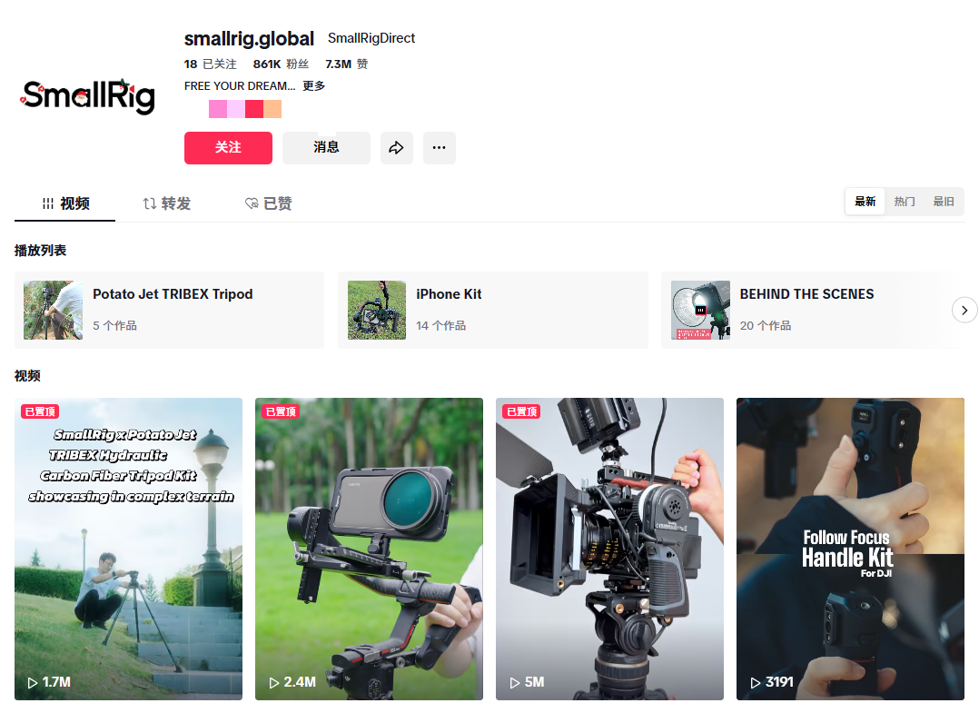 SmallRig品牌账号 图源:TikTok