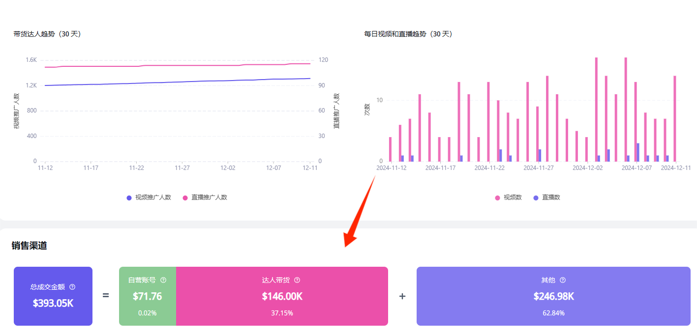 从数据分析上也可以看出,该品牌的在TikTok平台的销量约为39.3万美元(折合人民币约286万元),其中达人带货占据了14.6万美元(折合人民币约106.2万元),超过了一半的份额,由此可见,达人带货宣传为SmallRig品牌带来了不错的效益。