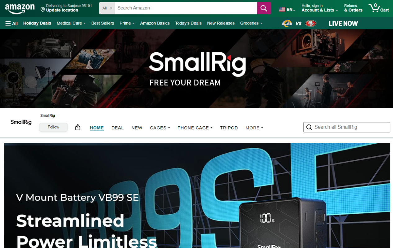 除了社交媒体平台,SmallRig品牌还在全球电商平台上开展了广泛布局,尤其是在亚马逊这一全球领先的跨境电商平台上。