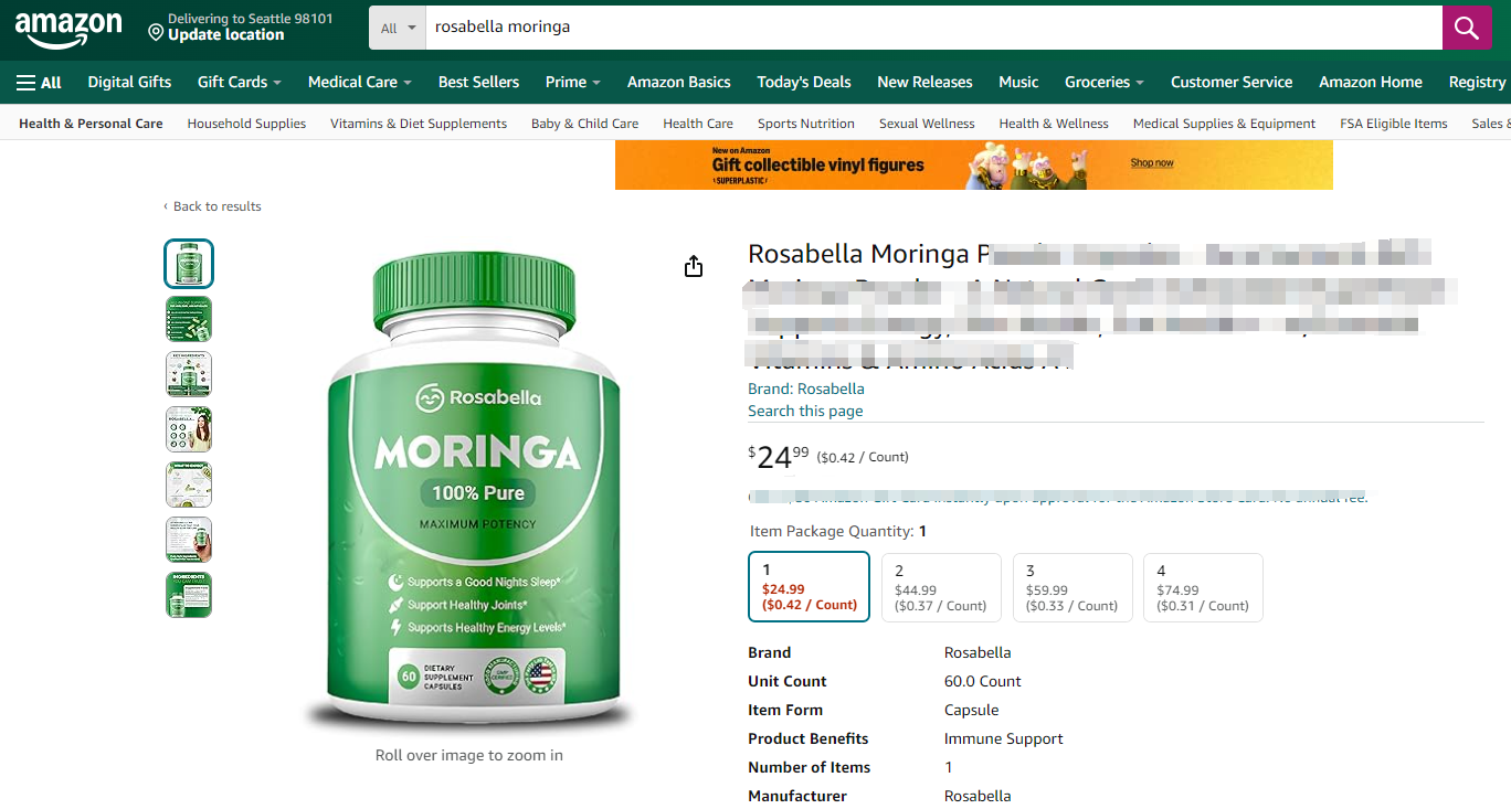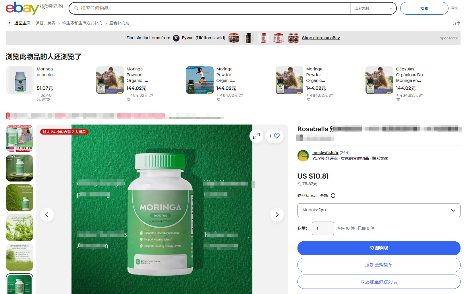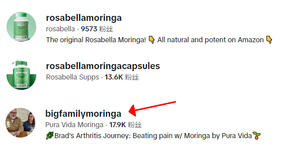 除了自己做达人号外,Rosabella也找了许多TikTok推广自己的产品,在TIkTok上搜索关键词“Rosabella”或者“MORINGA”,就能看到许多达人都在推广该产品。