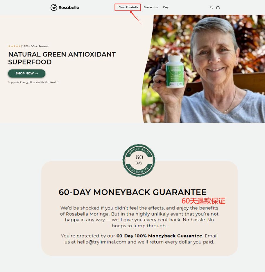 并且,Rosabella用不小的板块,在独立站下方专门贴了醒目的退款保证,这样做会让消费者产生更强的信任,对于购买产品也会更加放心。