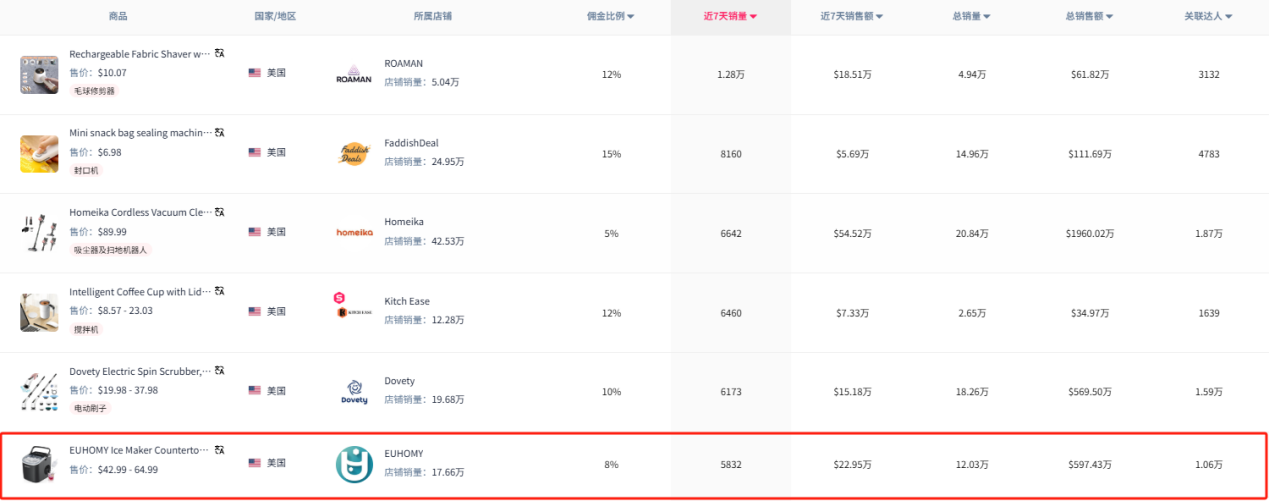 自2023年8月入驻TikTok美区以来,EUHOMY的销售额已突破1427万美元。这款制冰机之所以能够迅速走红,既是因为其“高颜值+高实用”的产品定位,也得益于契合欧美“冷口”饮食习惯和宅家经济的消费模式。