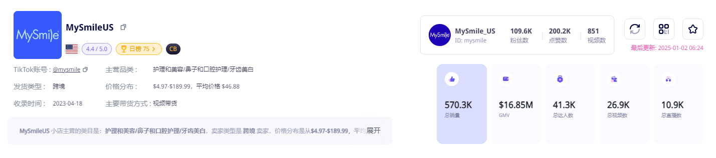 MySmile品牌的成功,是TikTok时代内容电商的经典案例。它通过小店与广告投放的结合,实现了从流量到变现的高效转化,同时也为品牌在社交媒体浪潮中找准了定位。