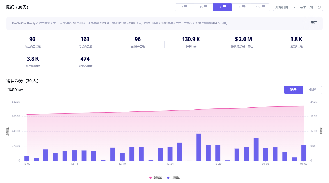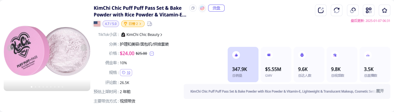 数据显示,2024年12月27日,KimChi Chic Beauty品牌单日销量达到1.11万单,销售额达到15.76万美元,这样的销量表现,足以说明合理的定价和吸引人的视频内容,确实对吸引消费者起到了很大的作用。