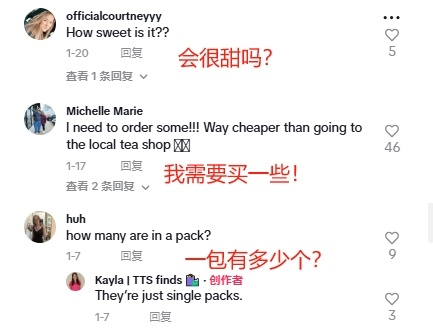 而且,这个品牌最加分的一点就是和粉丝的互动很积极。评论区里但凡有人提问,比如“你们的实体店有卖这个吗?”“是低咖啡因吗?”官方基本都会回复,让消费者有一种“品牌真的在听我说话”的感觉。这种接地气的运营方式虽然不算花里胡哨,但却能一步步提升用户的信任感和好感度,让更多人愿意关注、尝试甚至长期回购。