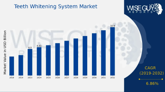 根据市场研究,全球牙齿美白系统市场的年复合增长率预计将达到6.86%,市场规模预计将在2032年增至10.9亿美元。