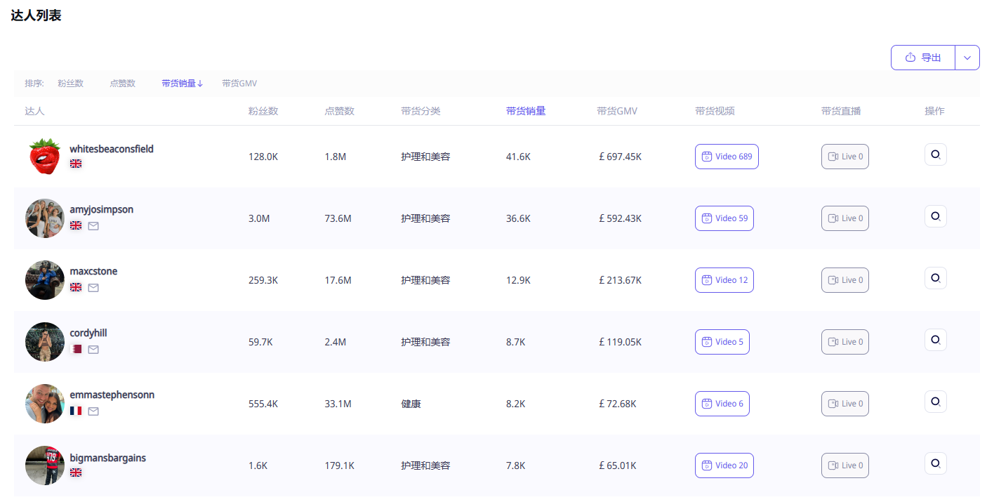 达人带货:占比34.93%,带动282万英镑GMV。