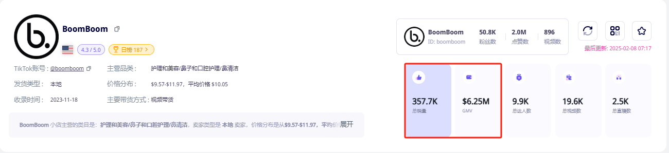 截至目前,BoomBoom品牌在TikTok Shop美区的销量已经突破了35.77万单,销售额更是达到了625万美元(约4555万人民币)。