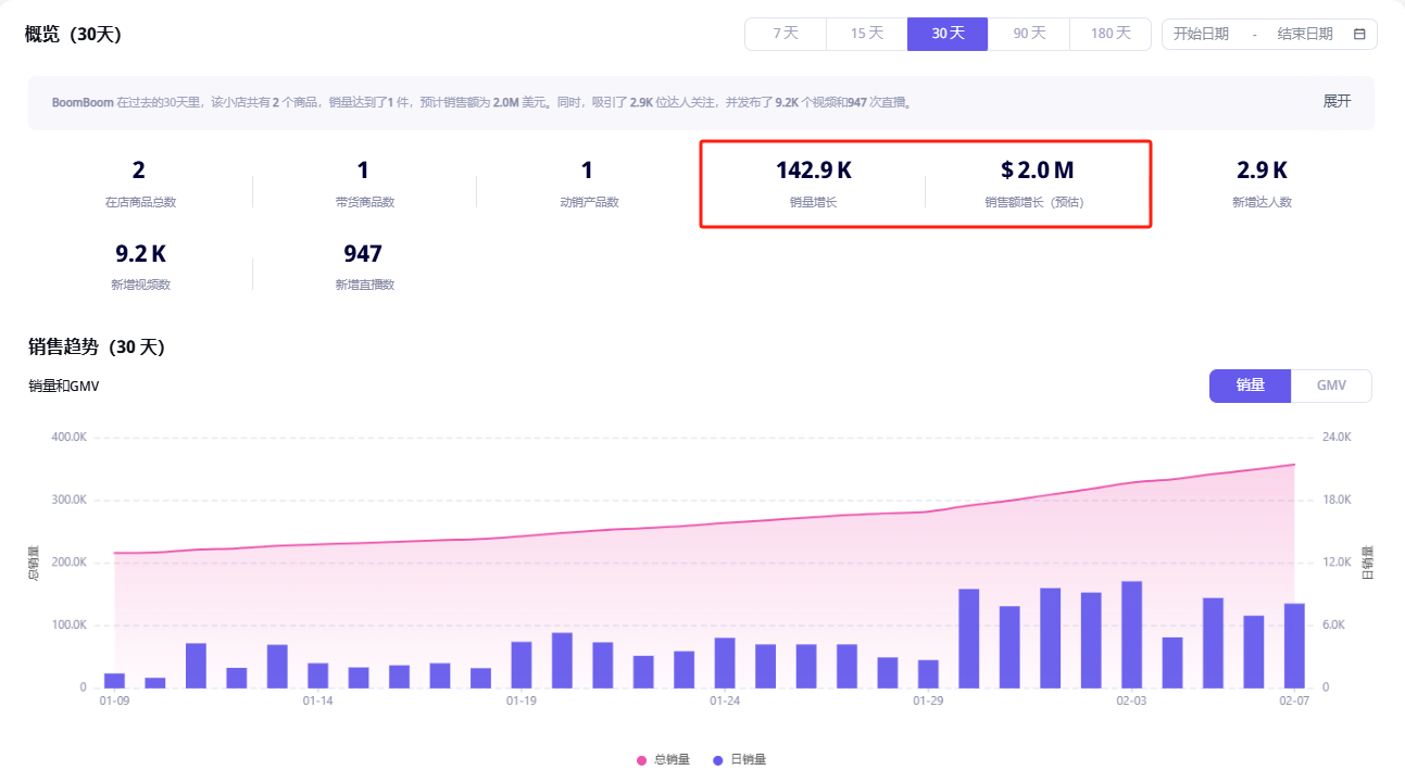 过去一个月,BoomBoom与达人合作进行了945场直播,销量突破了6.01万件,销售额高达91万美元(约663万人民币)。