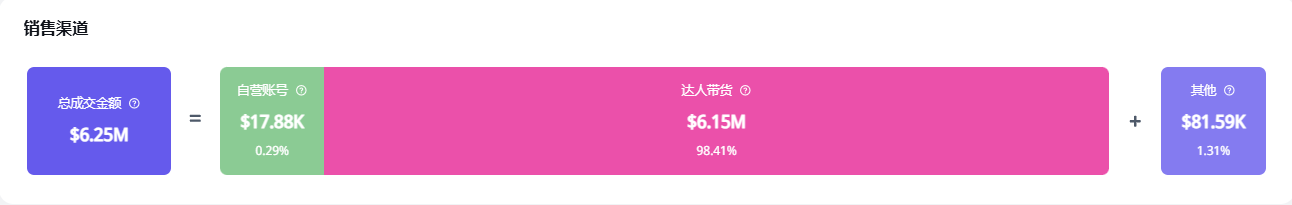 兔克在查看第三方数据后发现,达人带货对BoomBoom的销售贡献很大,占比高达98.41%,销售额突破了615万美元(约4482万人民币),这说明了达人合作对于BoomBoom品牌的成功至关重要。