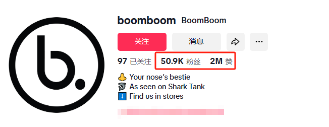 目前,其品牌账号@boomboom已经吸引了超过5.09万粉丝,点赞数达200万。虽然粉丝数量不算庞大,但账号的内容风格鲜明,凭借接地气的运营方式,成功吸引了目标群体的关注。