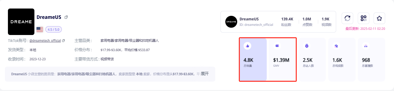 截至目前,通过视频带货,追觅在TikTok美区小店的销售额已经接近139万美元。