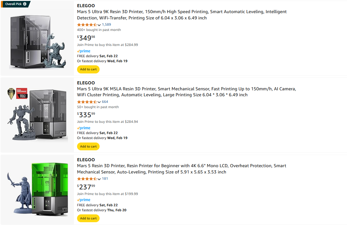 ELEGOO Mars系列产品 图源:亚马逊