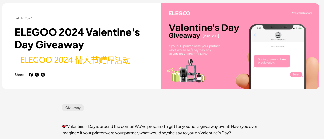 ELEGOO此前策划的情人节活动 图源:ELEGOO独立站