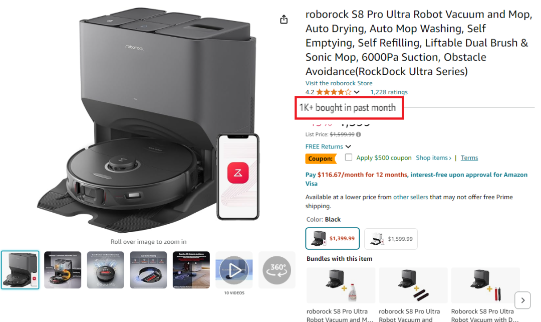 在德国、西班牙等14个国家,他们的产品稳定占据市场前三位置。而在亚马逊平台,一款定价1399.98美元的高端机型S8 Pro Ultra,上市一年半后亚马逊月销依然稳在1000台以上,这在向来信奉“性价比”的跨境电商领域,算得上是个异类。