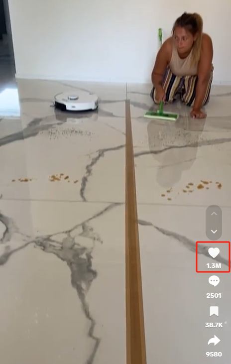 还有情侣博主@nicocaponecomedy(2840万粉丝),他们用扫地机器人和传统清洁工具比赛,用轻松有趣的方式展示了产品的优势。这条视频一经发布便迅速走红,获得了超过130万的点赞,引发了网友们的热烈讨论和分享。