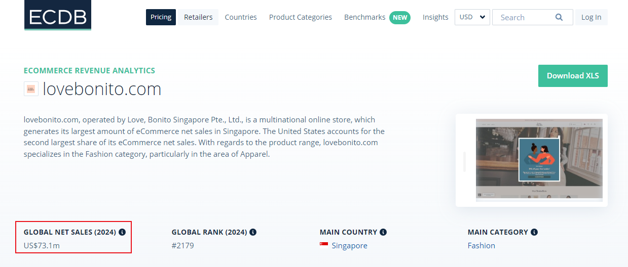 据了解,这个从二手服装博客起家的品牌,如今已发展成为东南亚最大的全渠道女装品牌之一。2024年,Love, Bonito的全球净销售额更是突破了7310万美元(折合人民币约5.3亿元),不仅在新加坡本土创下电商销售纪录,美国市场更成为其第二大收入来源。