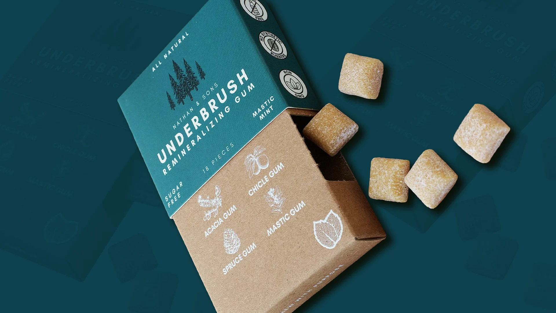该口香糖名字叫做UNDERBRUSH,是来自Nathan and Sons品牌的产品,主打“创新配方+维护清洁口腔”,完全颠覆了市场对传统口香糖的固有认知,将口香糖这一赛道玩出了新花样。
